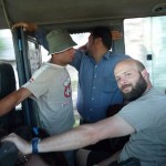 Y tampoco se lo pensaron mucho para decirme que dejara mi asiento y me pusiera delante con ellos. Me convertí en el pasatiempo del viaje. Me sentaron en el asiento de al lado del conductor, y los dos ayudantes se sentaron en las escalerillas y ahí estuvimos de charreta todo el viaje. Fue entretenido. El conductor era capaz de fumar, hablar con el móvil y mirar mi lista de vocabulario en árabe, al mismo tiempo que conducía… yo los llevaba por corbata, pero a ver quién dice nada… bueno, sí, les dije que en España si te pilla la poli hablando con el móvil te empapela, pero ya no me sentí capaz de explicarles cúantos años de cárcel te caerían si te pillaban haciendo los malabarismos que el hacía.