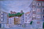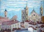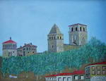 En este año Vicente realiza su obra de mayor formato, con casi dos metros de longitud, inspirada en un viejo boceto de la ciudad de Alcañiz, interpretándolo en su genuino estilo. |