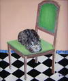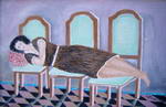 Y luego tenemos otras dos obras: una con un cándido jarrón en el comedor de su casa con colores desconcertantes en el ventanal, y otra de Luisa en la que vuelve a jugar hábilmente con las desproporciones. |