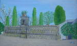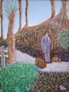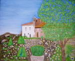 Nuevamente una estampa del huerto en la que se deja ver su estilo cercano al figurativo-abstracto, recurriendo a unas llamativas desproporciones junto con una mezcla de colores que exteriorizan su inquietud interior. |