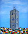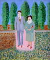 En este año Vicente sorprende con dos obras de temática distinta pero con un punto en común: el detalle que rompe los esquemas. En el primero la torre de la iglesia emerge desde un suelo indescriptible. En el retrato, el hijo mediano, Vicente y Luisa aparecen sobre un fondo rosa dando la sensación de que están siendo abducidos. |